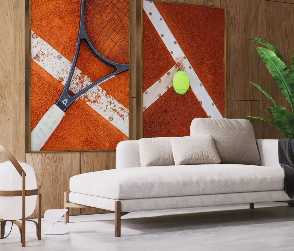 Com um olhar atento, seus detalhes – desde as linhas que dividem as quadras até as texturas da superfície – transmitem uma narrativa visual que vai além do esporte, transformando-o em uma obra de arte. As imagens dessa coleção são ideais para trazer dinamismo e estilo a qualquer ambiente, enriquecendo a decoração de lares, escritórios e espaços esportivos com a elegância e a motivação presentes no universo do tênis.